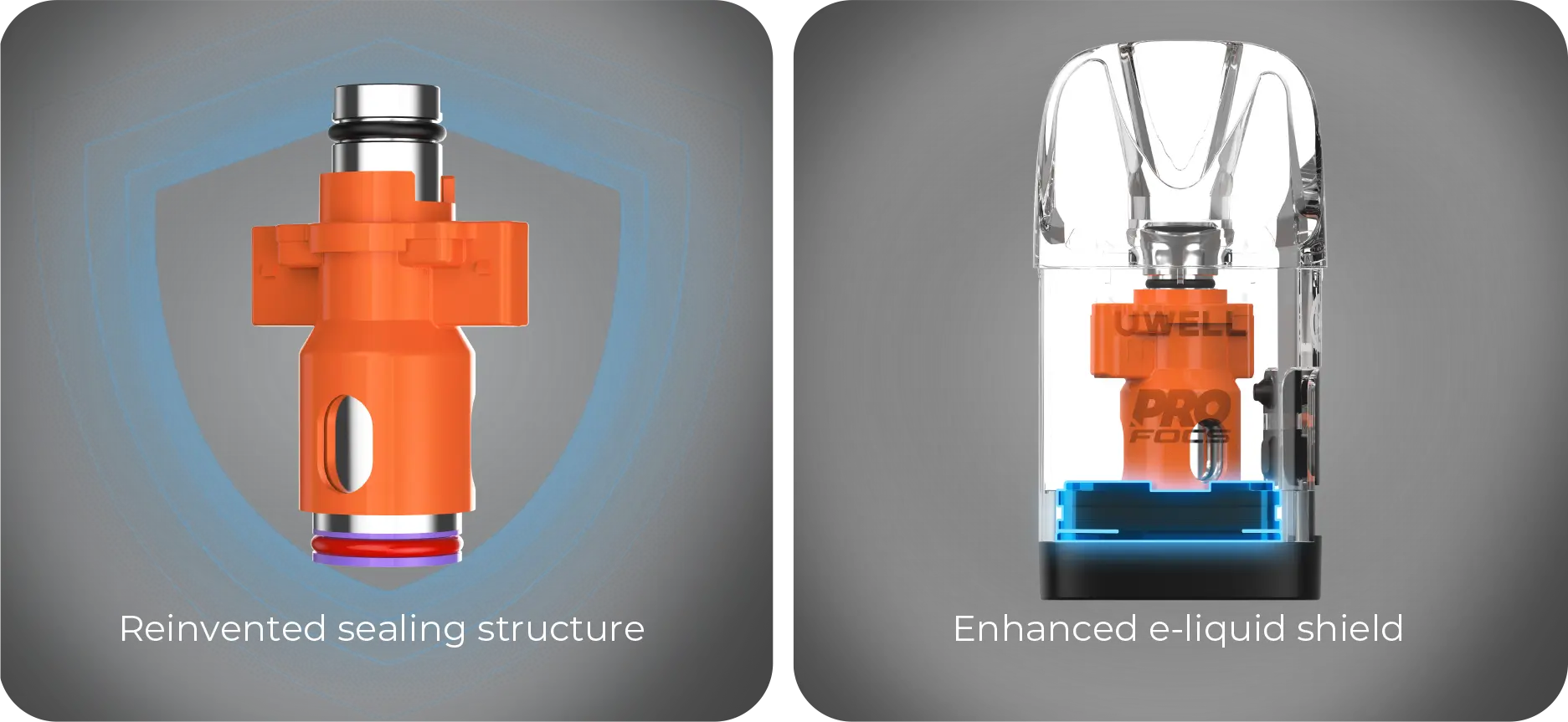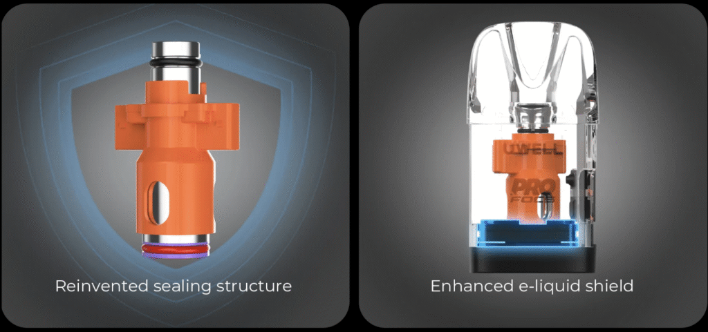 این سیستم با استفاده از مهر و موم مغناطیسی هوشمند، هنگام عدم استفاده مسیر عبور مایع را مسدود میکند و هنگام ویپینگ باز میشود. نتیجه: جلوگیری کامل از نشتی و افزایش طول عمر کارتریجها.