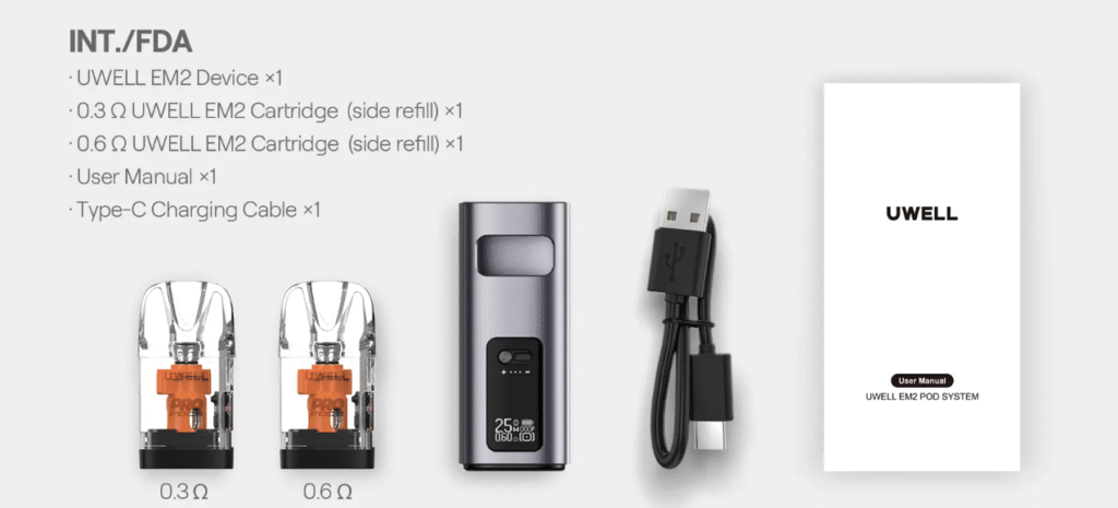 پاد یوول کالیبرن ای ام 2 با ابعاد جمعوجور و وزن سبک حدود 57 گرم، یک دستگاه کاملاً جیبی محسوب میشود. بدنه از آلیاژ آلومینیوم و PCTG ساخته شده که هم ظاهر لوکس و هم دوام بالایی را به همراه دارد.